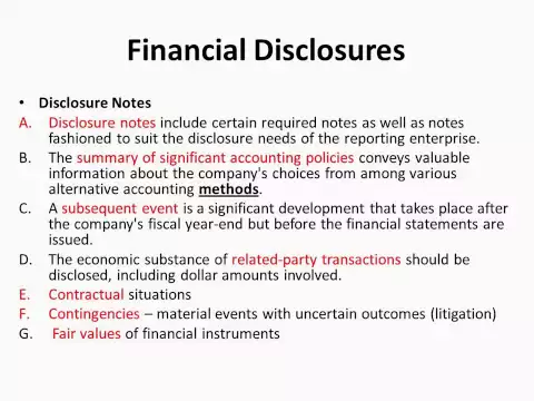 Financial disclosure is a big term that encompasses several types of documents. Since it relates to a deep accounting aspect of the company and deals with a huge array of information, it falls into several components: